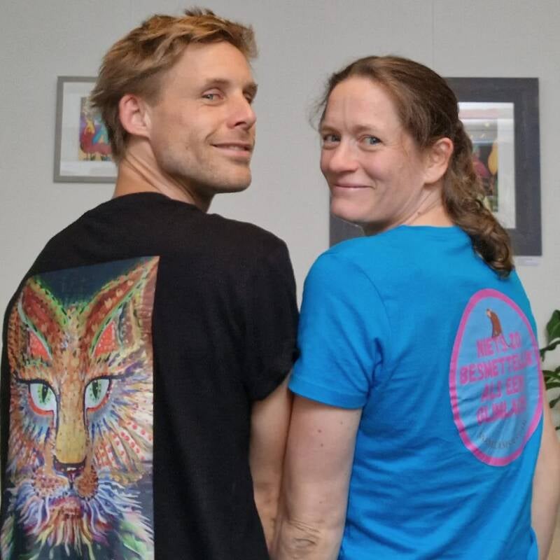 Op de openingsavond van Expositie Rebelution verblijdden de twee vriendinnen Mandy en Kim ons met hun aanwezigheid. Met hun stickers onder de naam Manki willen ze de wereld een beetje mooier, bewuster en vriendelijker maken en mensen een glimlach bezorgen. We hebben een shirt en tas van deze vrijheidsstrijders opgenomen: "Niets zo besmettelijk als een glimlach, te bestellen via: bit.ly/Hartvoorvrijheidrebelution.