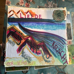 Onderaan meer vrij chronologisch lopend dicht, teken en schilderwerk van nu naar later.