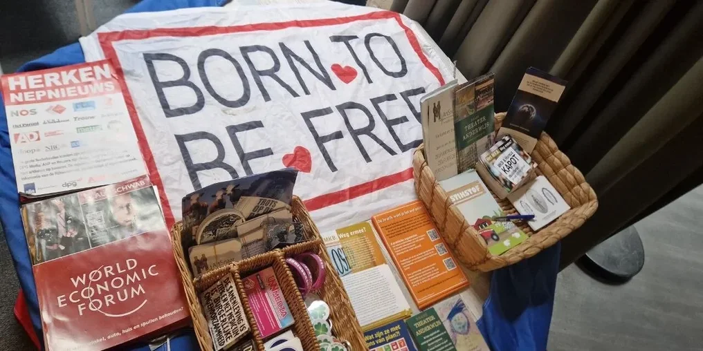 We organiseerden de expositie vanuit Stichting Wereldartiesten, die via exposities en kunstacties, rebels, gericht op vrijheid, waarheid, liefde in overvloed thema's wil aankaarten die vaak onbesproken blijven. Denk aan onze verhouding tot de overheid, die steeds meer bepaalt en controleert en de steeds verdergaande digitalisering. Zijn we nog bereid om voor onze vrijheid te gaan staan? Juist kunsten spelen hier een belangrijke rol in.
